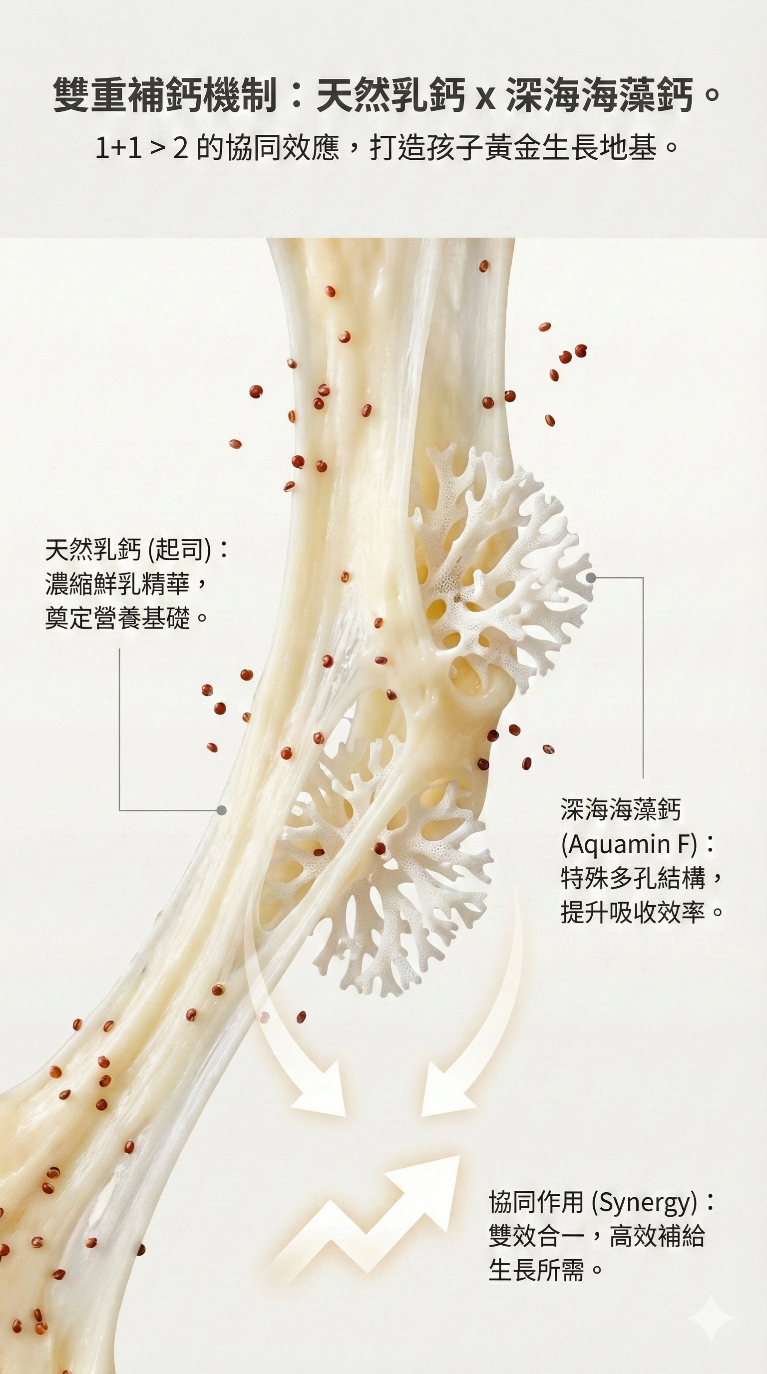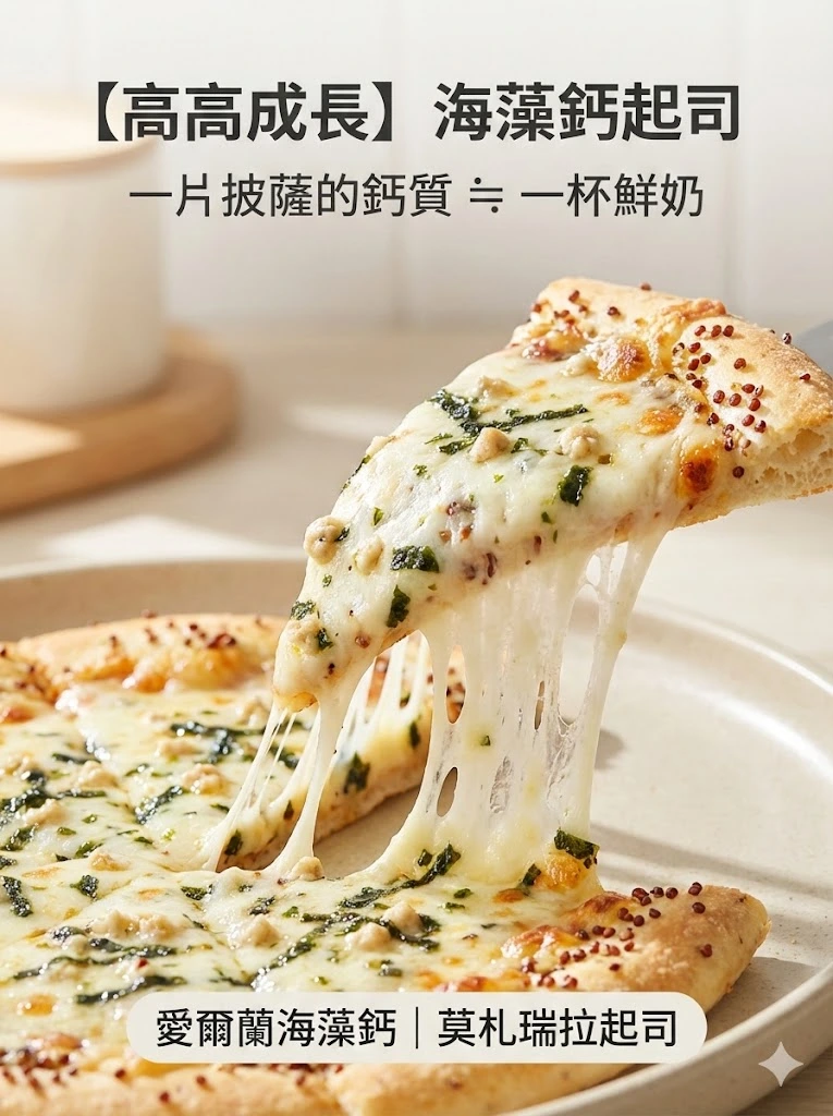 · 雙重補鈣協同:天然莫札瑞拉起司搭配海藻鈣,鎖住成長營養。