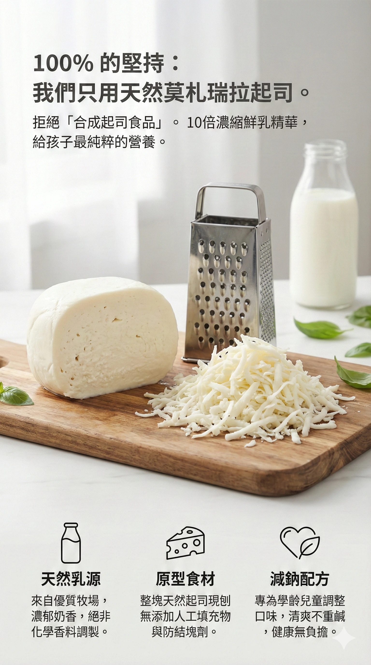 · 100% 原型食材:拒絕合成起司與防結塊劑,純粹乳香。